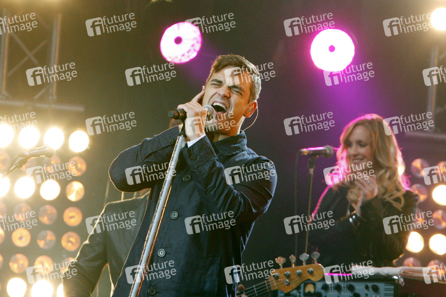 Robbie Williams Gratiskonzert zur Vorstellung seiner CD 'Reality Killed the Video Star' am Falkplatz vor der Max-Schmeling-Halle in Berlin