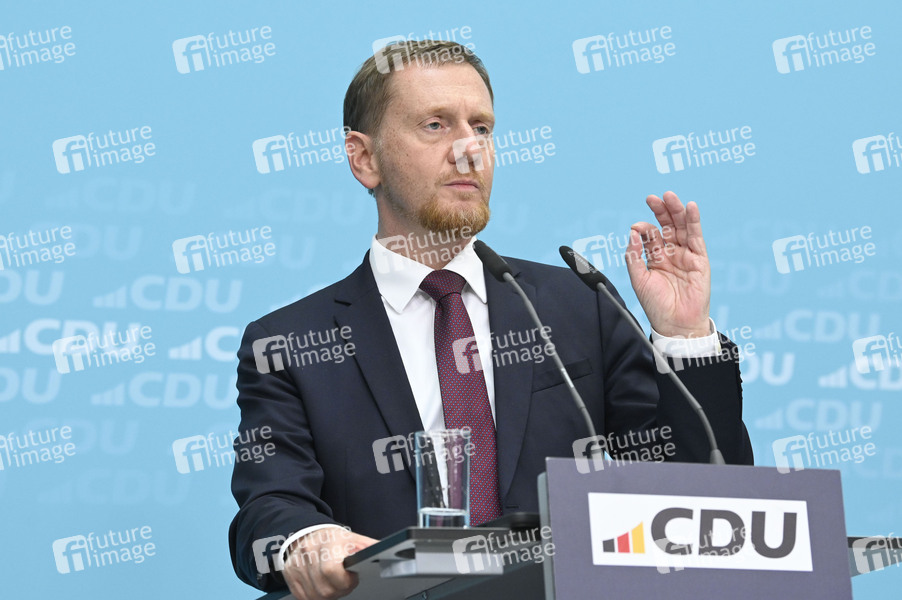 Michael Kretschmer bei der Pressekonferenz der CDU nach den Landtagswahlen in Thüringen und Sachsen im Konrad-Adenauer-Haus. Berlin, 02.09.2024