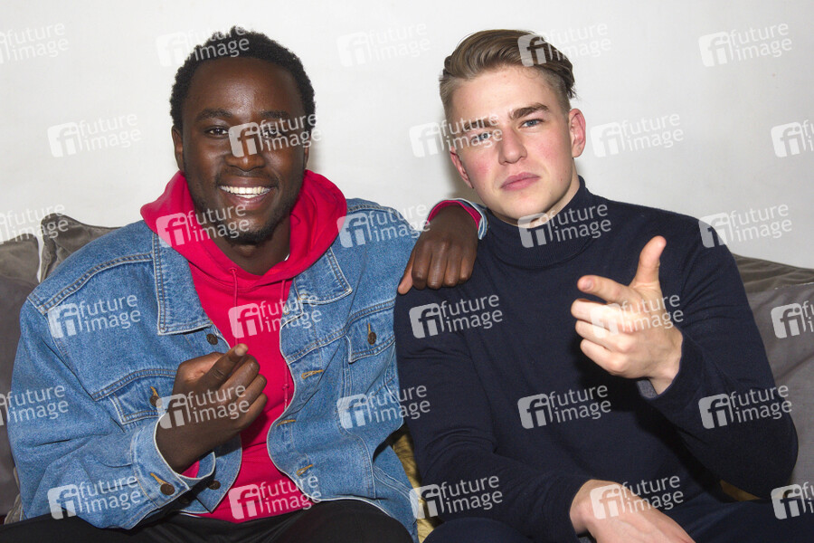 Jakob Ude und Jonny Mahoro (Jonny & Jakob) vor dem Auftaktkonzert zur ihrer 'Notfallnummer'-Tour 2019 im Prachtwerk. Berlin, 13.10.2019