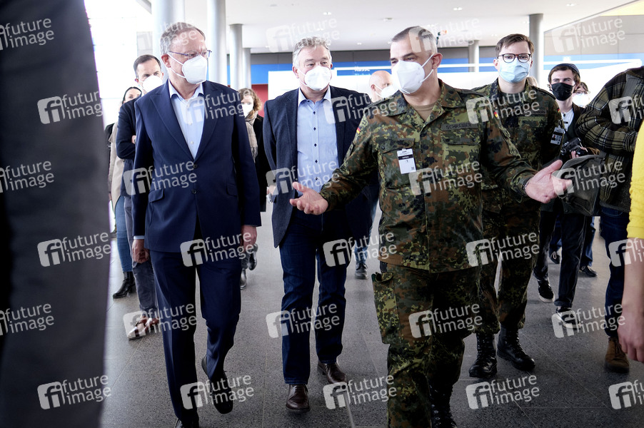 Ministerpräsident Stephan Weil bei der Besichtigung eines Corona-Notfallkrankenhauses auf dem Messegelande. Hannover, 04.04.2020