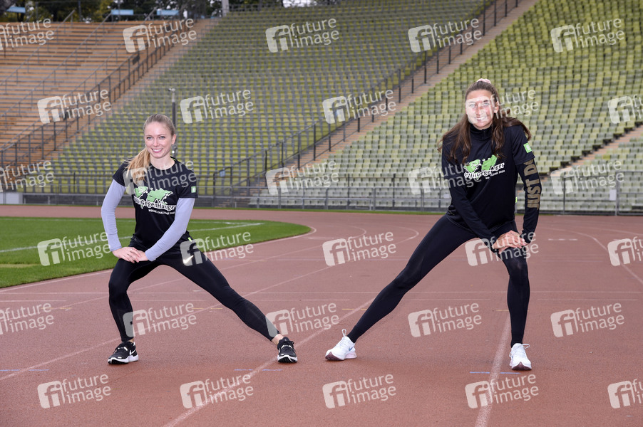 Katharina Trost und Christina Hering beim Fototermin zur sportichen '#WocheChallenge' im Olympiastation München. Unter dem Motto 'Wir können was bewegen!' ruft die Welthungerhilfe zu dieser Challenge auf und bittet um Spenden für eine Welt ohne Hunger. München, 13.10.2020