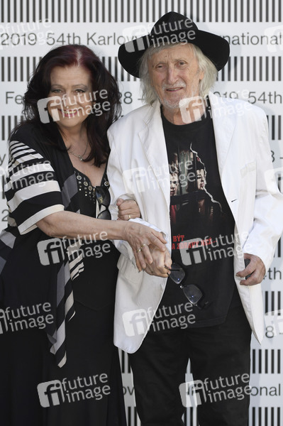 Deana Jakubiskoa-Horvathova und Juraj Jakubisko bei der Ankunft am Hoptel Pupp auf dem 54. Internationalen Filmfestival Karlovy Vary 2019. Karlsbad, 04.07.2019