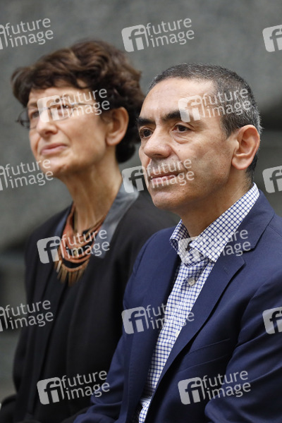 Özlem Türeci und Ugur Sahin, die Gründer des Biotechnologie-Unternehmens Biontech, bei der Verleihung der Ehrendoktorwürde der Medizinischen Fakultät der Uni Köln und der Eintragung ins Goldene Buch der Stadt Köln. Köln, 17.09.2021