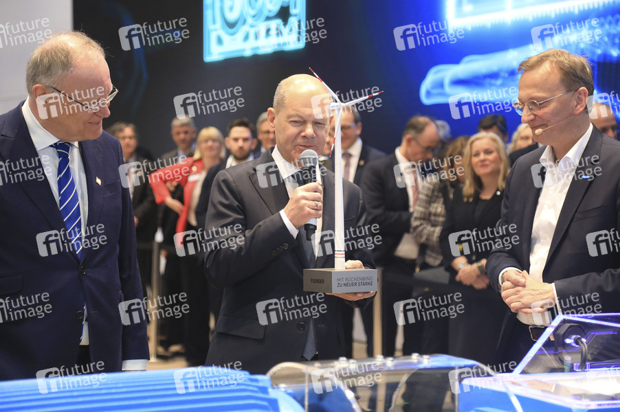 Deutsche Messe AG, Hannover Messe Industrie, Weltleitmesse der Industrie, Industriemesse, Industrieschau, Automatisierung, IT-Sicherheit, KI, Technologie, Wirtschaft, Ausstellung, Fair, Messe, Eröffnung, Opening, Leitmesse, Synergie und Kooperation, Wasserstoff & Brennstoffzellen, CO2-neutrale Produktion, Energizing a Sustainable Industry, Künstliche Intelligenz, Partnerland Kanada, Politiker, Bundeskanzler, Ministerpräsident von Niedersachsen