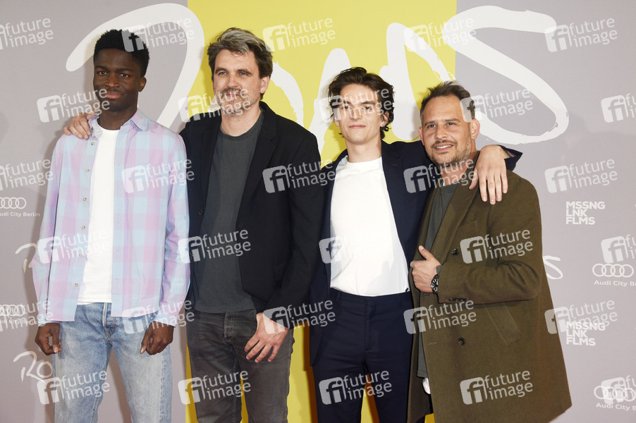 Stephane Bak, Sebastian Schipper, Fionn Whitehead und Moritz Bleibtreu bei der Premiere des Kinofilms 'Roads' im Kino International. Berlin, 08.05.2019