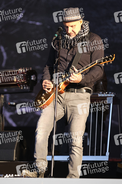Thorsten Wingenfelder von Fury in the Slaughterhouse live beim Autokultur-Konzert auf dem Schützenplatz. Die Besucher verfolgen unter Berücksichtigung klarer Hygiene-Vorschriften während der Corona-Krise den Auftritt aus dem Auto. Hannover, 14.05.2020