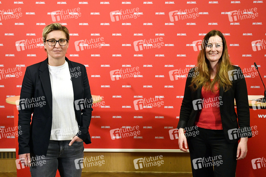 Susanne Hennig-Wellsow und Janine Wissler bei der Pressekonferenz zur Vorstellung der neuen Vorsitzenden der Partei Die Linke im Karl-Liebknecht Haus. Berlin, 01.03.2021