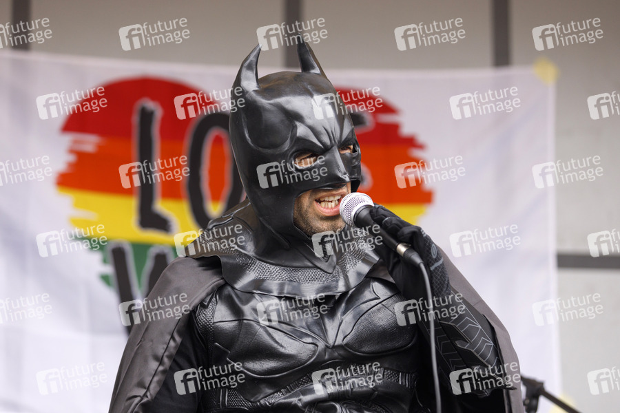 Querdenker, Querdenken, Demo, Demonstration, Rede, Corona, Coronaleugner, Corona-Maßnahmen, Verschwörungstheorien, Verschwörungstheoretiker, Regierungskritik, Regierungskritiker, Protest, Freidenken, Anti-Corona-Demo, Lock Down, Maskenpflicht, Mindestabstand, Corona-Demo, Corona-Demonstration, Querdenken-Demo, Hygienedemo, Initiative Querdenken, Pandemie, Protestaktion, Protestdemo, Protestdemonstration, Sars-CoV-2, Schutzmaßnahmen, Transparent, Versammlung, Verschwörungen, Corona, Virus, Coronavirus, Coronakrise, Karneval, Grundgesetz, Grundrechte, Freiheit, Batman, Kostüm