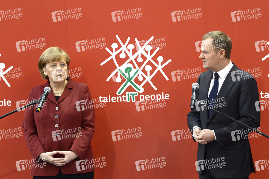 Politikerin, Bundeskanzlerin der Bundesrepublik Deutschland, CDU, Politiker, Ministerpräsident von Polen, PO, Computermesse, Centrum der Büro- und Informationstechnik, Messe, Büroautomation, Informationstechnologie, Telekommunikation, Computertechnik, Computer Expo