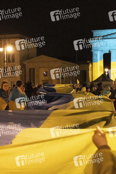 Anlässlich des dritten Jahrestages des Beginns des Krieges von Russland gegen die Ukraine versammelten sich mehrere tausend Menschen zu einer Solidaritätsdemonstration. Der Zug führte vom Lustgarten zum Brandenburger Tor in Berlin-Mitte. Berlin, 24.02.2025
