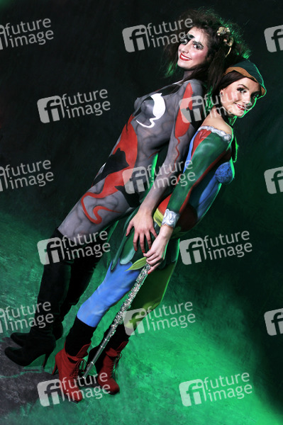Rattenfänger Bodypainting mit den Models Lisa und Janina im Schlosshotel Münchhausen, Aerzen. Body Paint Künstler: Jörg Düsterwald