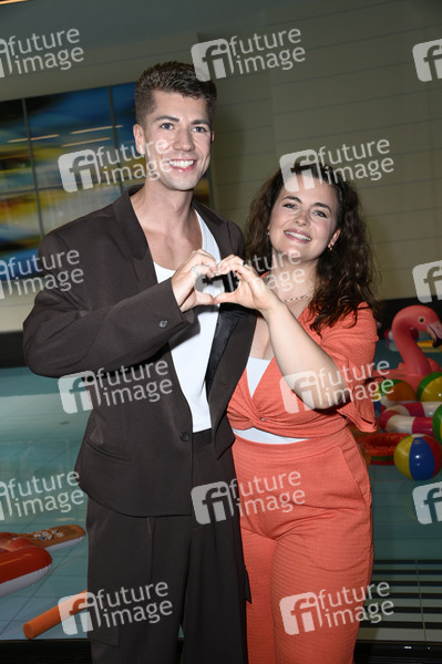 Maximilian Seitz und Ronja Forcher beim Charity Promi Swim Event 2025 von Maximilian Seitz zugunsten von 'Kindeswohl-Berlin' im Hotel Pullman Berlin Schweizerhof. Berlin, 24.07.2025