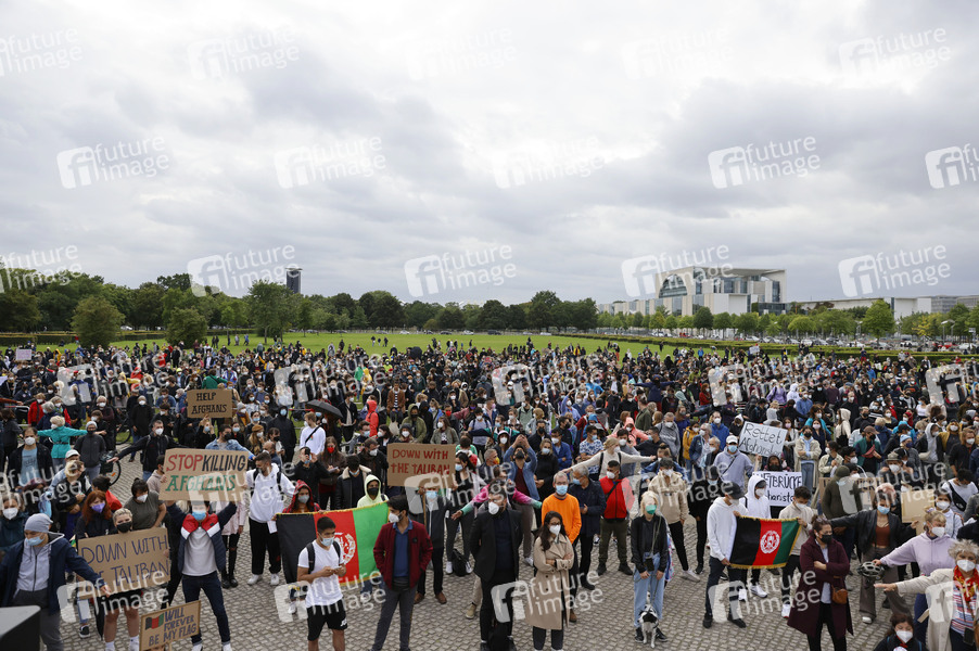 Demonstranten bei der Kundgebung unter dem Motto 'Luftbrücke jetzt! Schafft sichere Fluchtwege aus Afghanistan!' auf dem Platz der Republik. Berlin, 17.08.2021