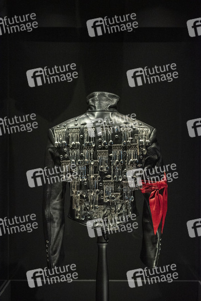 Lederjacke aus den 80ern designed von Michael Jackson bei Eröffnung der Ausstellung 'Michael Jackson: On the Wall' in der Bundeskunst- und Ausstellungshalle. Die Ausstellung untersucht den Einfluss von Michael Jackson auf einige der führenden Persönlichkeiten der zeitgenössischen bildenden Kunst. Sie umfasst mehrere Künstlergenerationen sowie alle Medien. Erstmals werden Werke von über vierzig Künstlern versammelt, die aus öffentlichen und privaten Sammlungen in aller Welt stammen, darunter auch Exponate, die eigens für die Ausstellung geschaffen wurden. Die Ausstellung wurde von der National Portrait Gallery, London, entwickelt und mit der Bundeskunsthalle organisiert in Kooperation mit dem Michael Jackson Estate. Bonn, 20.03.2019