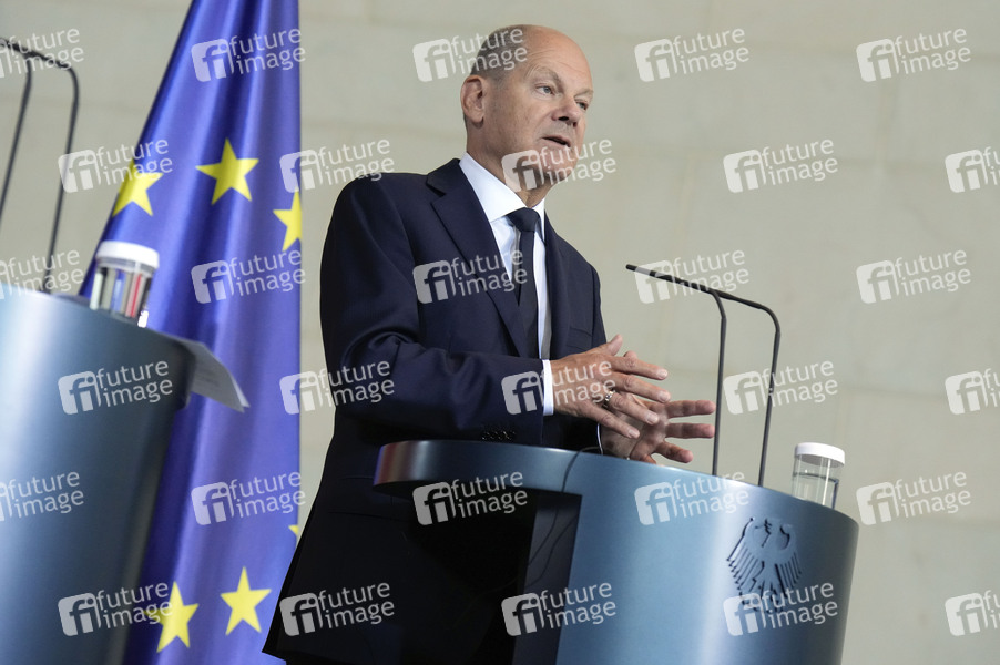 Olaf Scholz beim Empfang des Premierministers von Japan mit militärischen Ehren und zu einem gemeinsamen Gespräch mit anschließendem Pressestatement im Bundeskanzleramt. Berlin, 12.07.2024