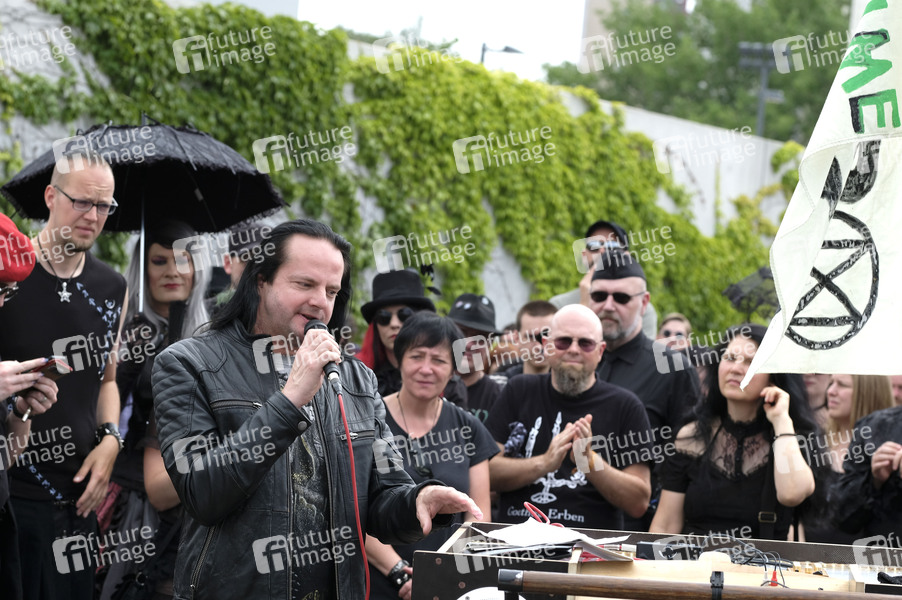 Oswald Henke (Goethes Erben) - Besucher des 28. Wave-Gotik-Treffens und Klimaaktivisten der Klimaschutzbewegung Extinction Rebellion bei einem gemeinsamen Trauermarsch für aussterbende Arten mit anschliessenden Die-In. Leipzig, 10.06.2019