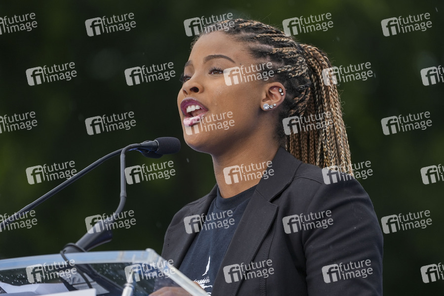 DC Youth Mayor Addison Rose spricht auf dem March for Our Lives. Tausende Menschen demonstrieren gegen die landesweite steigende Waffengewalt und fordern den Kongress auf, Schritte zu ihrer Beendigung zu unternehmen. March for Our Lives wurde von Überlebenden der Massenschießerei 2018 an einer High School in Parkland, Florida gegründet. Washington, 11.06.2022