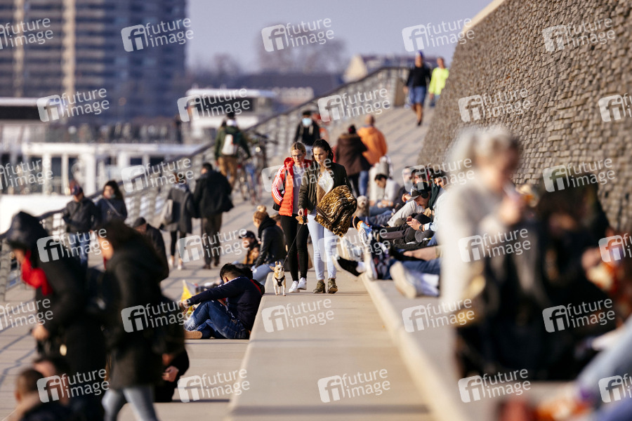 Rheintreppe, Rheinboulevard, Sonnenbaden, Sonne genießen, Frühling, Natur, Luft schnappen, Spaziergang, Frühling, Virenschutz, Ausbreitung, Lock Down, Lockdown, Hautkontakt, Öffentlichkeit, Eindämmung, Seucheneindämmung, anstecken, infizieren, Vorbeugung, Prävention, schützen, Schutz, Ausgangssperre, Ausgangssperren, Ausgangsverbot, Ausgangsverbote, Kontaktverbot, Kontakt-Verbot, Kontaktverbote, Versammlungsfreiheit, Versammlungsverbot, Abriegelungen, Ansammlungsverbote, Ansammlungsverbot, Ausgangseinschränkung, Ausgangsbeschränkungen, Kontaktsperre, Bewegungsfreiheit, Grundrechte, Einschränkung, Verzicht, Seuchenschutz, Mindestabstand, Eindämmung, Seuchenschutz, Corona-Schutz, Virus, Viren, Corona, Sars-CoV-2, Covid-19, Coronavirus, Coronaviren, Corona-Virus, Corona-Viren, Ansteckung, Ansteckungsgefahr, Epidemie, Pandemie, Infektion, Infektionen, Social Distancing, zu Hause bleiben, Selbstisolation, soziale Kontakte, Risiko, Risikobewertung, Maßnahmen, Neuansteckungen, Ansteckung, Coronakrise, Corona-Krise, Coronamaßnahmen, Corona-Schutz, flatten the curve, Ausnahmesituation, Zeitgeschichte, Übertragung, Erreger, Prävention, #stay home, #stayhome, Corona-Regeln, Corona-Maßnahmen, Zwangsquarantäne, Ordnungswidrigkeit, Bußgeld, Ordnungsgeld, Versammlungsfreiheit, nicht mehr als zwei Personen, öffentliche Treffen, Ausgang, Menschengruppen, Menschenansammlung, Menschenmassen, Symbolfoto, Symbolbild