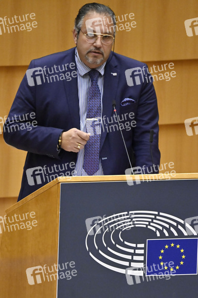 Romeo Franz bei einer Plenartagung zu Rassengerechtigkeit, Diskriminierungsverbot und Vorgehen gegen Rassismus in der EU im Plenarsaal des Europäischen Parlaments. Brüssel, 10.11.2022
