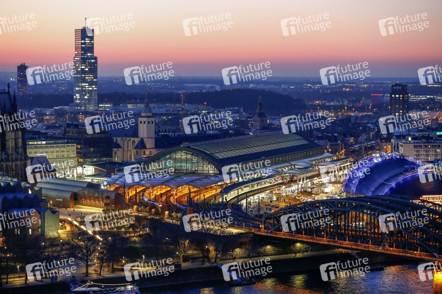 Köln Hauptbahnhof In Köln mit Abendhimmel nach dem Sonnenuntergang. Köln, 02.11.2024
