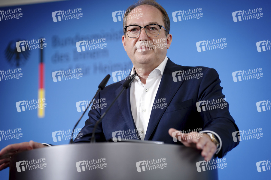 Alexander Dobrindt beim Pressestatement zu den Beschlüssen des Bundeskabinetts im Bundesministerium des Innern. Berlin, 23.07.2025