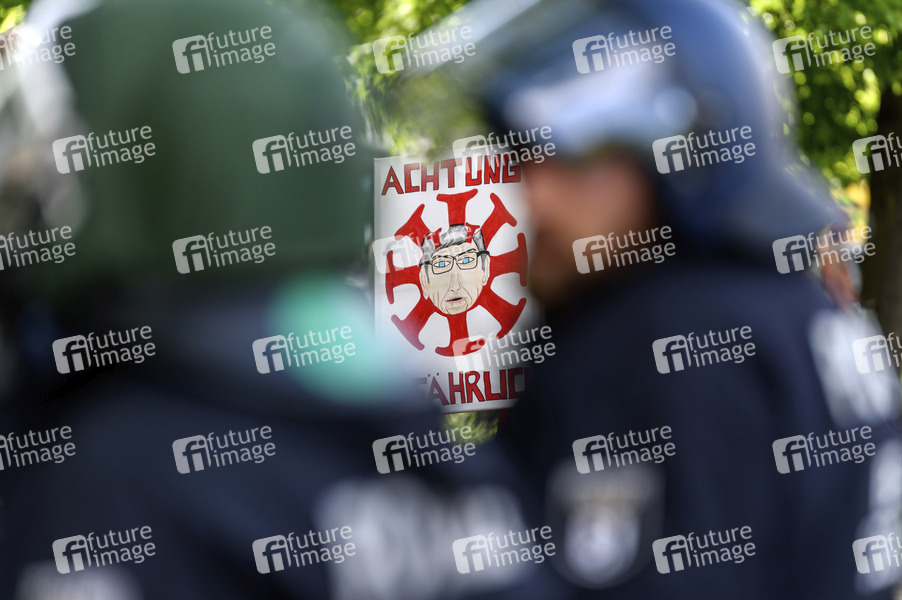 Spontandemonstration gegen die Einschränkung der Grundrechte durch Corona-Eindämmungsverordnung im Rahmen Infektionsschutzes. An dem Protest beteiligten sich Verschwörungstheoretiker, Impfgegner aber auch rechte Gruppierungen und Hooligans. Die Polizei nahm mehrere Personen wegen des Verstoßes gegen die Corona-Eindämmungsmßnahmen fest. Derzeit sind in Berlin nur ortsfeste Proteste mit 50 Teilnehmern erlaubt. Ein Teil der Protestaktoien war nicht angemeldet. Berlin, 16.05.2020