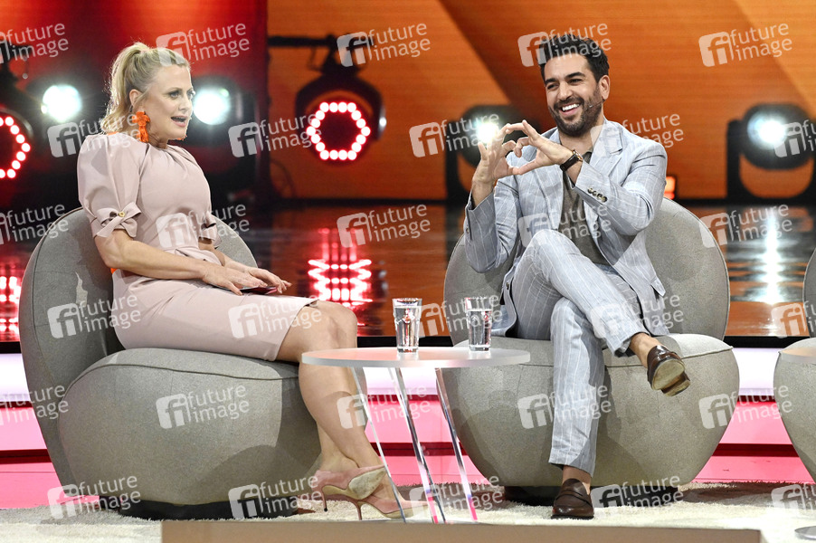 Barbara Schöneberger und Elyas M'Barek bei der Aufzeichnung der ARD-Unterhaltungsshow 'Verstehen Sie Spass?' im Studio H in Berlin-Adlershof. Berlin, 31.03.2022