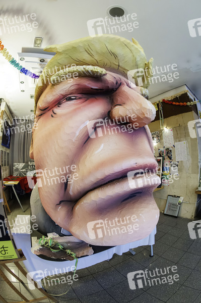 Politik, Politiker, Donald Trump, Trump, US-Präsident, Präsident der USA, Republikanische Parte, Wirtschaftlicher Stillstand, Baustelle, Baustellen, Ladenlokal, Pappmaché, Jacques Tilly, Olaf Huurdeman, Dietmar Wolf, Die Friedrichs, Rosenmontagswagen, Rosenmontag, Karneval, US President, President of the United States, Protest, König, Autokratie, Autokrat
