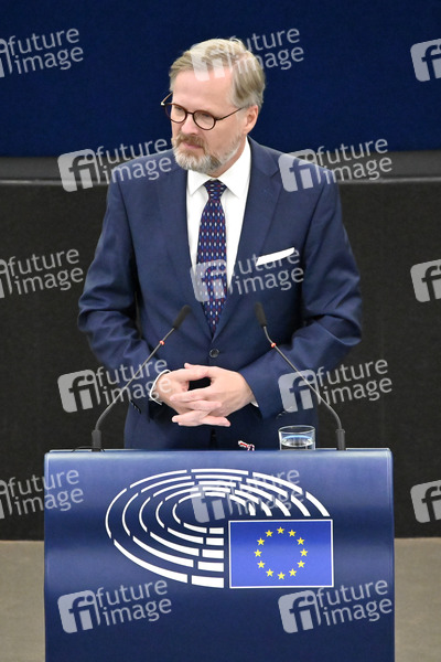 Petr Fiala präsentiert die Prioritäten der tschechischen EU-Ratspräsidentschaft im Plenarsaal des Europäischen Parlaments. Das Motto der tschechischen Ratspräsidentschaft lautet 'Europa als Aufgabe'. Das Motto unterstreicht die Notwendigkeit, die derzeitige EU-Politik im Lichte des russischen Angriffskrieges gegen die Ukraine neu zu bewerten. Straßburg, 06.07.2022
