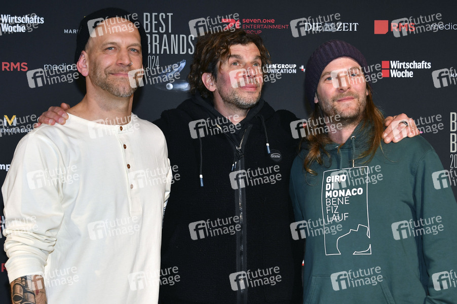 Florian Weber, Rüdiger Linhof und Peter Brugger von Sportfreunde Stiller bei der 21. Verleihung der Best Brands Awards 2024 im Hotel Bayerischer Hof. München, 27.02.2024