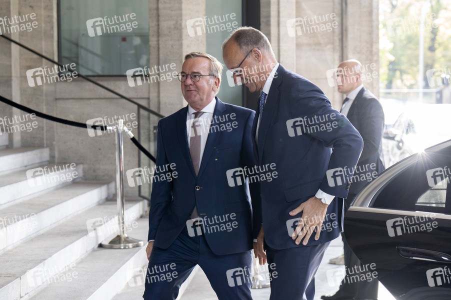 Boris Pistorius und Friedrich Merz bei der Ankunft zur 14. Sitzung des Bundeskabinetts im Bundesministerium der Verteidigung. Berlin, 27.08.2025