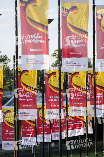 Am 22. Mai 2024 wurde in Bonn der Platz des Grundgesetzes eingeweiht. Hiermit wurde die Bedeutung von Bonn als Verfassungsstadt unterstrichen. 200 Fahnenmasten sind mit dem Schriftzug '75 Jahre Grundgesetz Demokratie Made in Bonn' versehen. Bonn, 25.05.2024
