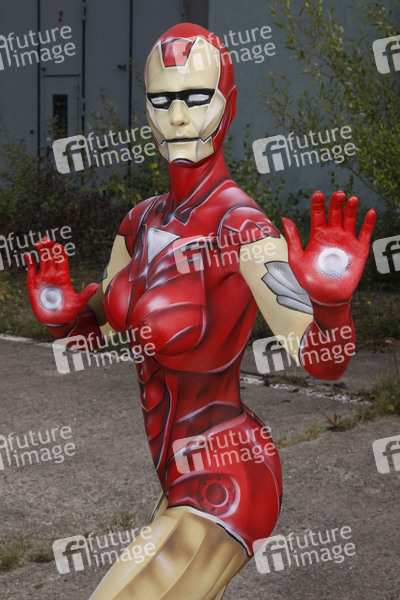 Projekt Farbkörper, Cosplay, Cosplayer, Bodypainting, Body-Painting, Make-up, Latexappliaktionen, Latexteile, Maskenbildnerei, Maskenbildner Körperkunst, Körperfarben, Farbe, Bemalung, Kunst, Malerei, Superheld, Superheldin, Comics, Comicfigur, Marvel, Iron Man, body painting, body art, superhero, super heroine, project color body, colors, colours