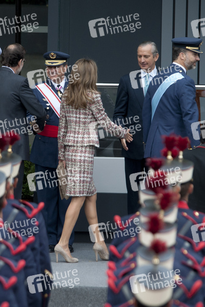 Die spanische Königsfamilie bei der Hommage an die Nationalflagge mit Militärparade am Palacio Real, Madrid