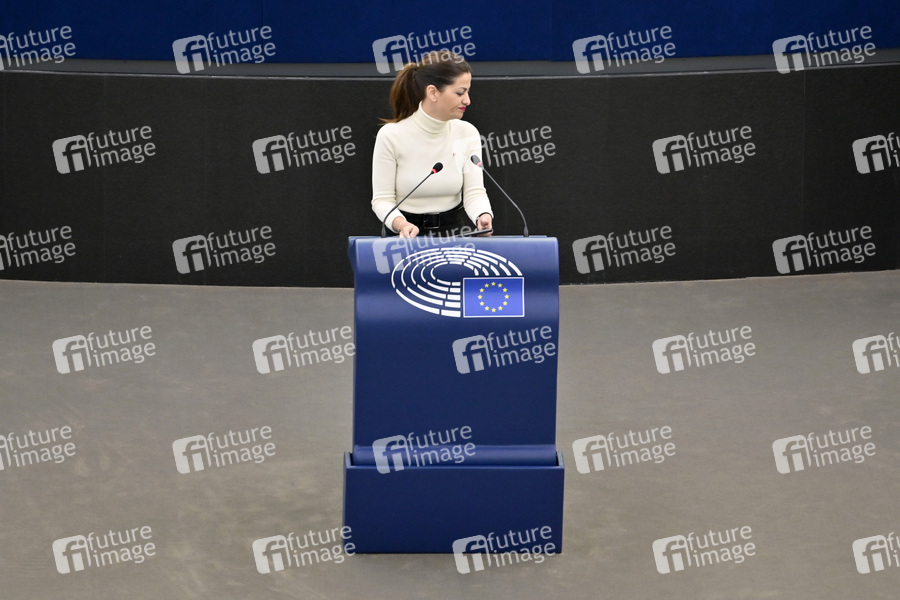 Sira Rego bei der Präsidentschaftskandidaten-Präsentation im Plenarsaal des Europäischen Parlaments. Straßburg, 18.01.2022