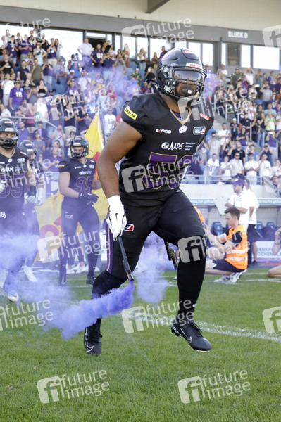 Daniel Josiah (53) beim American Football-Spiel Frankfurt Galaxy gegen Madrid Bravos in der PSD Bank Arena Frankfurt. Frankfurt am Main, 10.08.2024