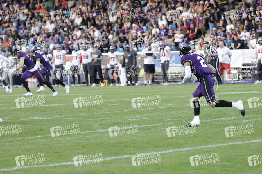 Paul Lenhardt (2) beim American Football-Spiel Frankfurt Galaxy gegen Cologne Centurions in der PSD Bank Arena Frankfurt. Frankfurt am Main, 13.07.2024