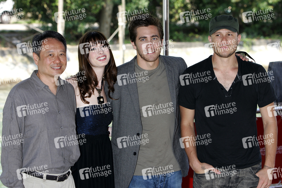 Ang Lee, Anne Hathaway, Jake Gyllenhaal und Heath Ledgerbei der Ankunft zum Photocall zum Kinofilm 'Brokeback Mountain' auf der Biennale di Venezia 2005 / 62. Internationale Filmfestspiele von Venedig im Palazzo del Casino. Venedig, 02.09.2005