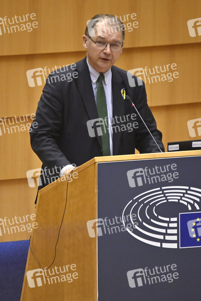 Rede, außerordentliche Sitzung, Sondersitzung, Politik, Europaparlament, EU-Parlament, EP, Parlament der Europäischen Union, Parlamentum Europaeum, MdEP, Mitglied des Europäischen Parlaments, Krieg, Angriffskrieg, Einmarsch, Europapolitik, internationale Krise, internationale Politik, internationales Recht, Konflikt, Krieg, Kriegsbeginn, Kriegsverbrechen, Krise, Militäroffensive, Militärschlag, Sanktionen, Solidarität, Solidaritätsbekundung, Ukraine, Ukrainekonflikt, Ukraine-Konflikt, Ukrainekrise, Ukraine-Russland-Krise, Politiker, Belgien, Ecolo, Co-Vorsitzender der Fraktion Die Grünen/EFA