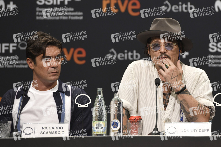 Riccardo Scarmarcio und Johnny Depp bei der Pressekonferenz zum Kinofilm 'Modi - Three Days on the Wings of Madness' auf dem 72. Internationalen Filmfestival San Sebastian / Festival Internacional de Cine de San Sebastián im Kursaal. San Sebastian, 24.09.2024