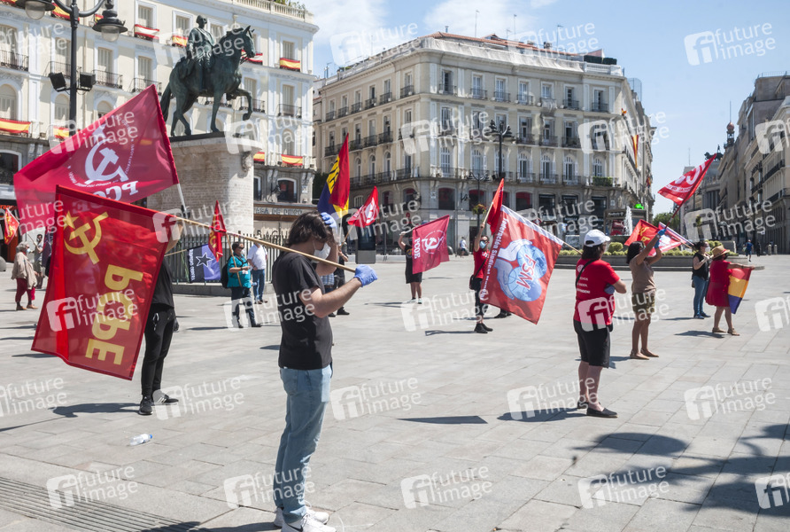 Coroan Demonstration der kommunistischen Partei PCPE auf der Puerta del Sol. Madrid, 23.05.2020
