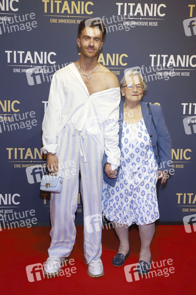Felix Nieder mit Oma Waltraud Bräuß bei der Eröffnung der Ausstellung 'Titanic: Eine Immersive Reise' in der Expo-Halle im Nikolai-Quartier. Hamburg, 14.04.2025