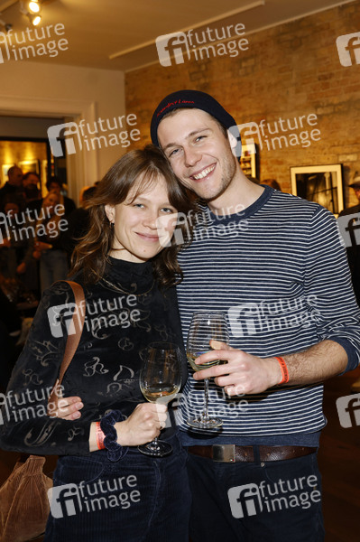 Anna Bachmann und Richard Kreutz bei der Eröffnung der Fotoausstellung 'Zuversicht und Lebensfreude' der Fotografen Florian Froschmayer & Arne Friedrich in der Stay Curious Media Gervinusstrasse 12. Berlin, 10.01.2025