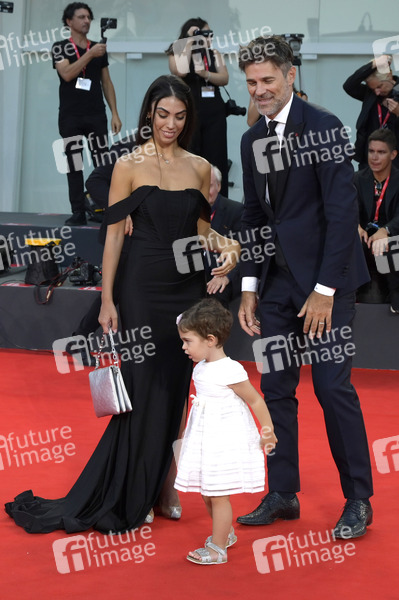 Fabio Fulco mit Ehefrau Veronica Papa und Tochter Agnes bei der Verleihung des Kineo Award 2023 auf der Biennale di Venezia 2023 / 80. Internationale Filmfestspiele von Venedig im Palazzo del Cinema. Venedig, 02.09.2023