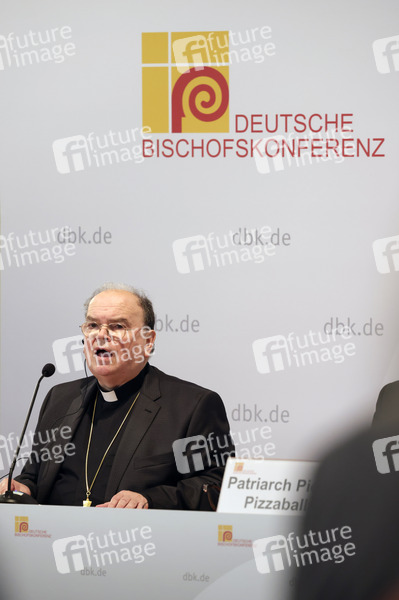 Prominenz, Pressekonferenz, PK, Versammlung, Treffen, Deutsche Bischofskonferenz, DBK, Zusammenschluss der römisch-katholischen Bischöfe aller Diözesen in Deutschland, Katholische Kirche, Glaube, Religion, Kleriker, Theologe, Bischof von Augsburg, Vorsitzender der Kommission Weltkirche der Deutschen Bischofskonferenz