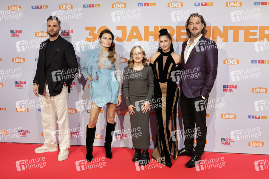 Benjamin Heinrich, Tabea Heynig, Sophia Gül, Valea Katharina Scalabrino und Diego Seyfarth bei der Jubiläumsgala zu 30 Jahre RTL-Daily 'Unter uns' in der Wassermannhalle. Köln, 27.11.2024