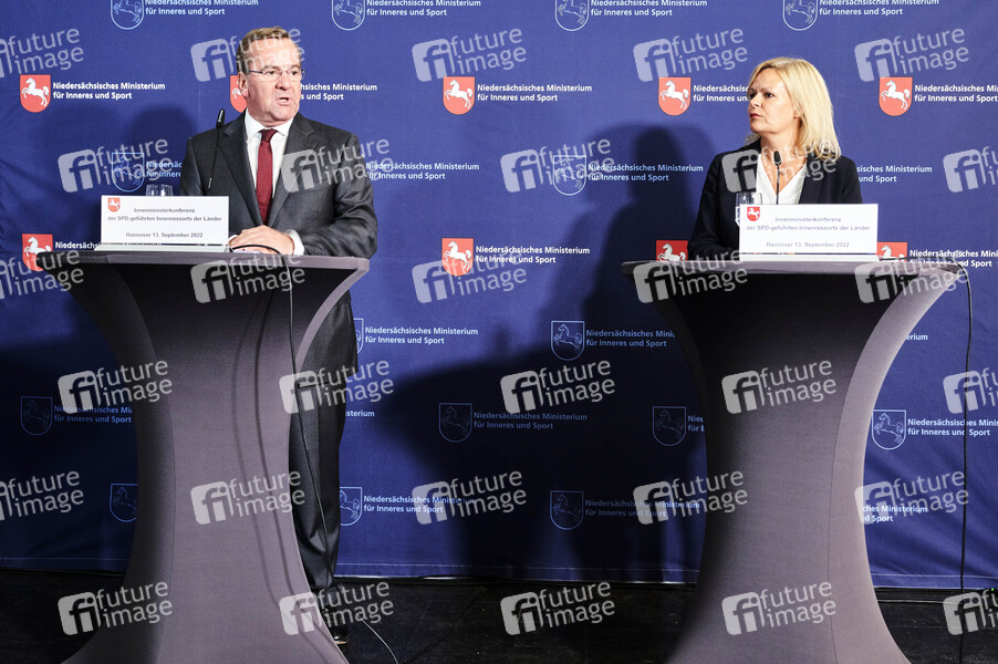 Boris Pistorius und Nancy Faeser bei der A-Innenministerkonferenz der SPD-geführten Innenressorts im Alten Rathaus. Hannover, 13.09.2022