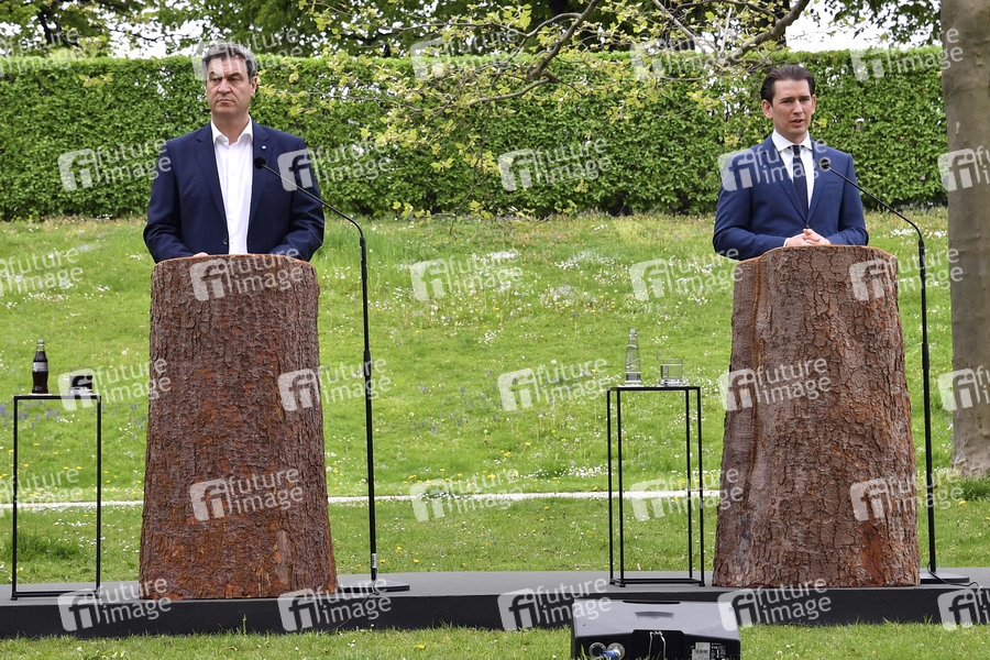 Markus Söder und Sebastian Kurz bei einem Pressestatement des bayerischen Ministerpräsidenten und des österreichischen Bundeskanzlers im Hofgarten der Staatskanzlei. München, 11.05.2021