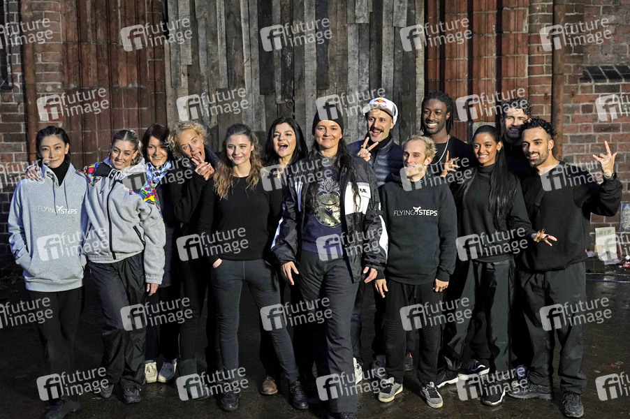 Nicolette Krebitz, Katja Riemann, Svenja Jung, Katja von Garnier, Jasmin Tabatabai, Ben Wichert und Mitglieder des Urban-Dance-Ensembles 'Flying Steps' beim Fototermin am Set des Kinofilms 'Fly' in der Ruine der Franziskaner-Klosterkirche. Berlin, 06.12.2019