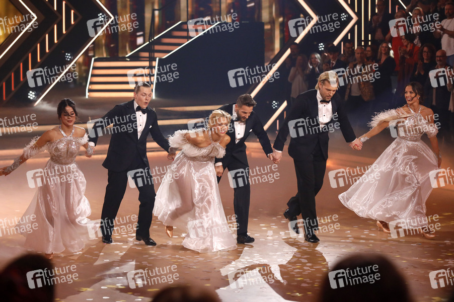 Mark Keller, Gabriel Kelly, Tillman Schulz mit Profitänzerinnen